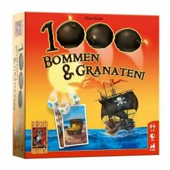In 1000 Bommen en Granaten! probeer je met 8 dobbelstenen zoveel mogelijk gelijke symbolen te dobbelen. Je mag zo vaak opnieuw dobbelen als je wilt, maar schedels moet je opzij leggen. Gooi je een derde schedel, dan is je beurt direct voorbij en scoor je geen punten. Een piratenkaart geeft je mogelijkheden en beperkingen in je beurt aan. Hoe meer gelijke symbolen je gooit, hoe meer punten je scoort. Daarbij ontvang je nog extra punten voor goud en diamanten. Scoren al je dobbelstenen, dan krijg je nog een extra bonus. Gooi je met je eerste worp 4 of meer schedels, dan bezorg je de andere spelers minpunten. Wie als eerste een bepaald aantal punten heeft bereikt, wint het spel. 1000 Bommen en Granaten! is een eenvoudig dobbelspel, waarin je steeds moet kiezen tussen stoppen of doorgaan. Een spel voor de echte gokliefhebber!