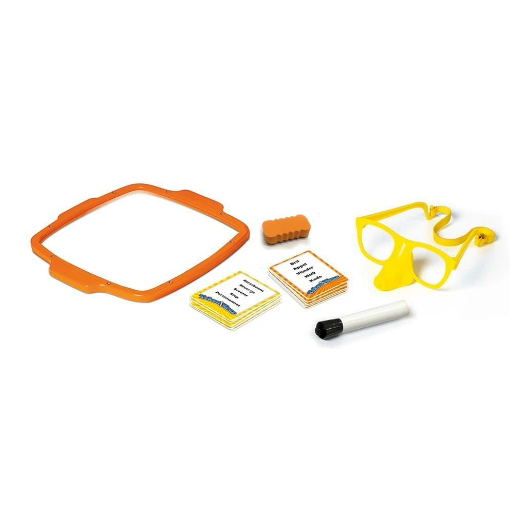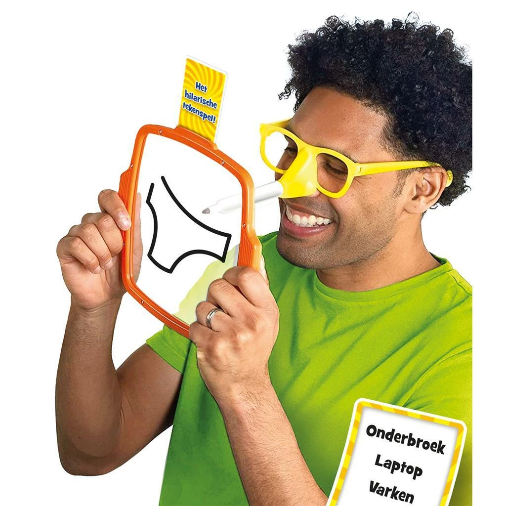 Met het spel Tekenneus, teken je met je neus.Trek een kaart, zet de gekke bril op enbevestig de stift aan de stifthouder. Teken iederwoord van het lijstje en laat de andere spelers ze één voor één raden.Wie weet istekenen met de neus wel je verborgen talent! Voor ieder woord dat werd geraden, scoren zowel de tekenaar als de speler die het antwoord juist had een punt. De speler met de meeste punten aan het einde van het spel is de winnaar! Het spel is geschikt voor kinderen vanaf 7 jaar en ouder.