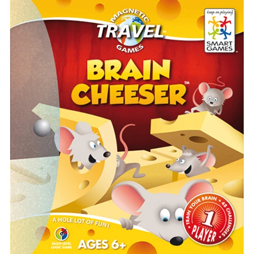 Ben jij de kaas de baas of zit je hoofd vol gaten? Leg de puzzelstukken op het spelbord zodat de muizen door gaten in de kaas kijken. Soms blijven gaten leeg, maar je mag nooit halve gaten maken. Een super-leuk magnetisch reisspel met 48 opdrachten in oplopende moeilijkheidsgraad. Vanaf 6 jaar.